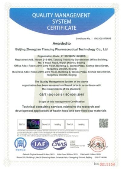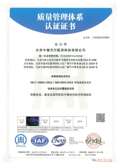 近日,ISO9001質(zhì)量管理體系認證審核組蒞臨北京中健天行醫(yī)藥科技有限公司,對我司進行了ISO9001質(zhì)量管理體系的年度監(jiān)督審核工作。此次評審旨在進一步確認我司在質(zhì)量管理方面的持續(xù)改進和符合性,確保我司的產(chǎn)品研發(fā)申報服務(wù)與管理體系達到國際標(biāo)準(zhǔn)要求。