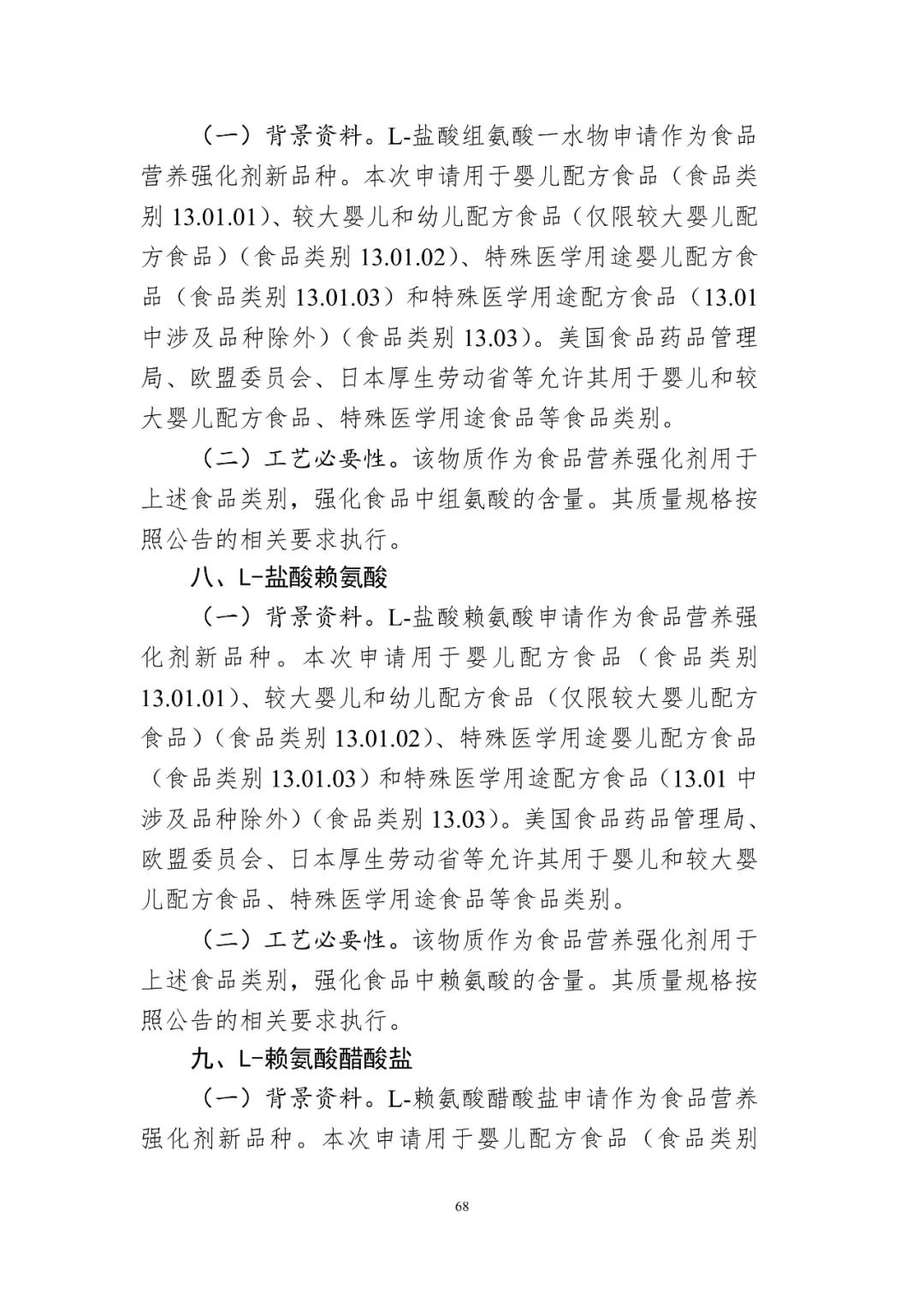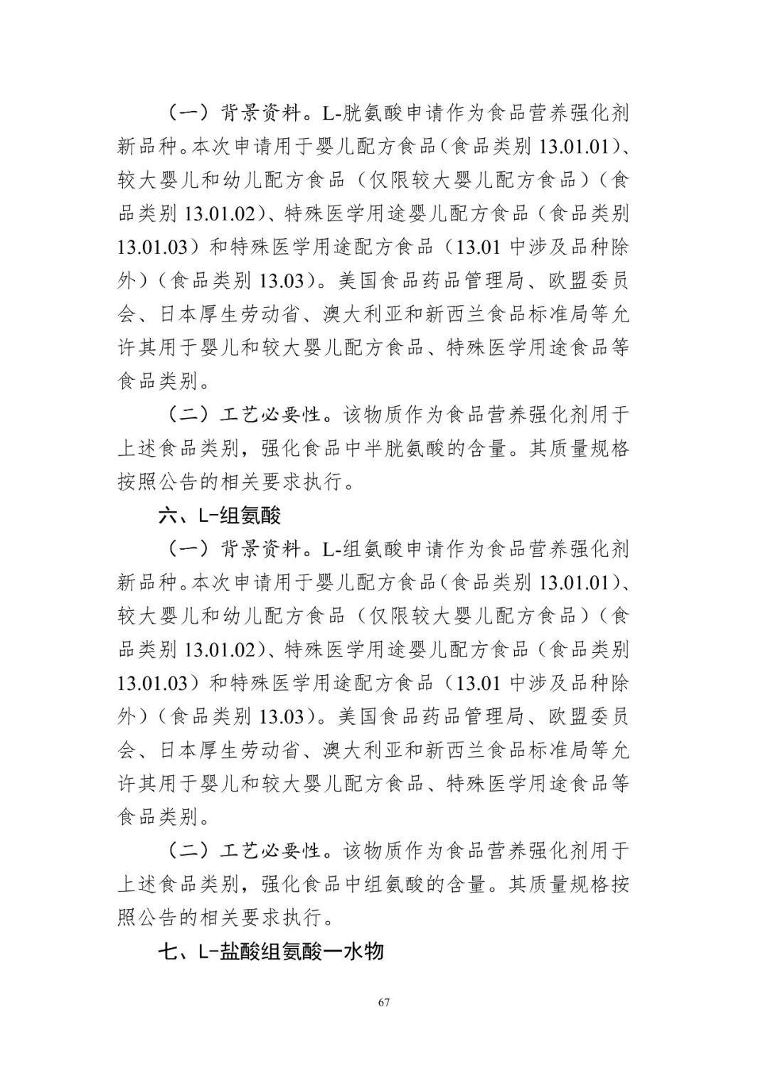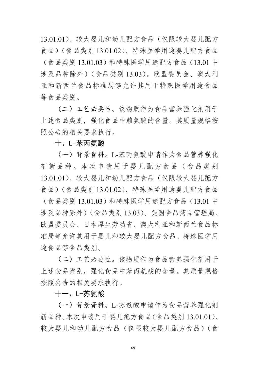 (2)L-半胱氨酸、L-半胱氨酸鹽酸鹽一水物、L-半胱氨酸鹽酸鹽、L-胱氨酸、L-組氨酸、L-鹽酸組氨酸一水物、L-鹽酸賴(lài)氨酸、L-賴(lài)氨酸醋酸鹽、L-苯丙氨酸、L-蘇氨酸的用量及使用范圍: