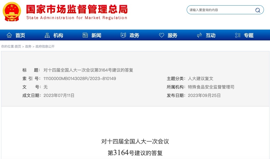 您提出的《關于支持貴州省特殊食品產業(yè)高質量發(fā)展的建議》收悉。經商國家衛(wèi)生健康委,現(xiàn)答復如下: