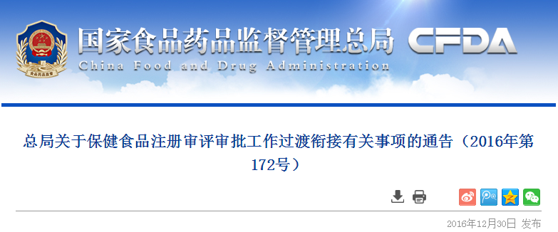 2016年11月15日,國家食品藥品監(jiān)督管理總局印發(fā)了《保健食品注冊審評審批工作細則(2016版)》(以下簡稱《細則》),明確了保健食品注冊審評審批的工作程序和要求。為保證保健食品注冊審評審批工作平穩(wěn)有序開展,現(xiàn)就《細則》實施前已受理注冊申請的審評審批事項通告如下: