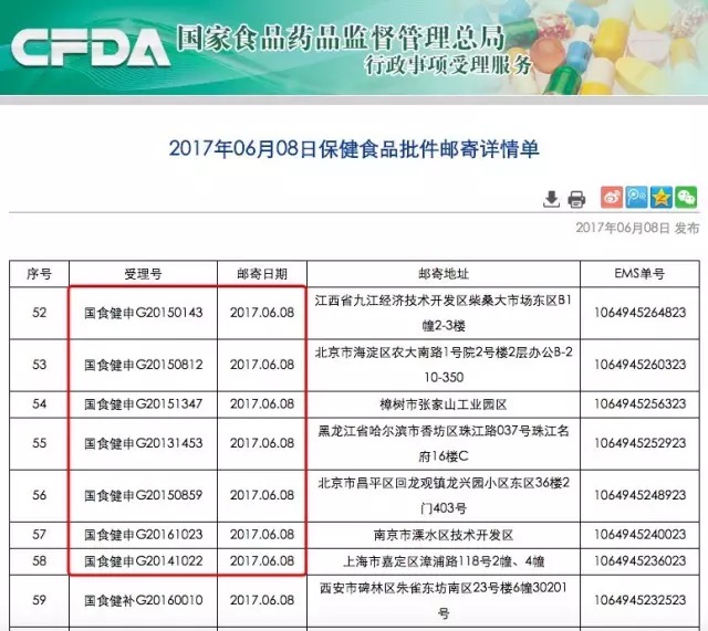 2017年6月8日,CFDA行政事項(xiàng)受理服務(wù)官網(wǎng)今年首次公布七個(gè)新獲批保健食品批準(zhǔn)證書,自2016年8月31日公布新獲批保健食品之后已時(shí)隔九個(gè)月!