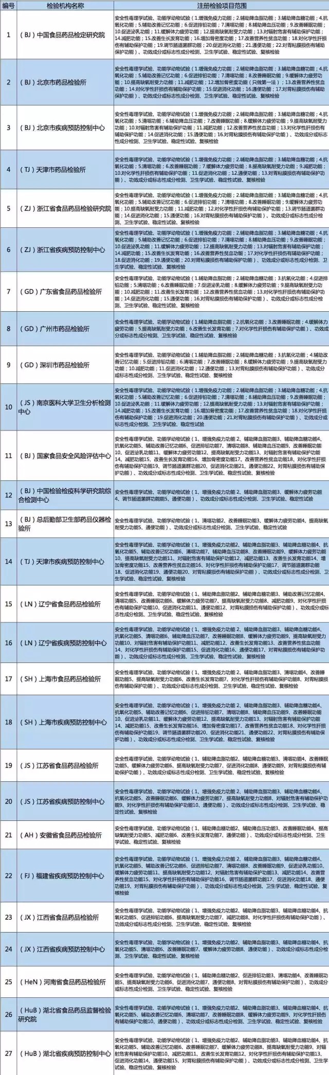 CFDA遴選的58家保健食品注冊(cè)檢驗(yàn)機(jī)構(gòu)名單(含檢驗(yàn)項(xiàng)目)
