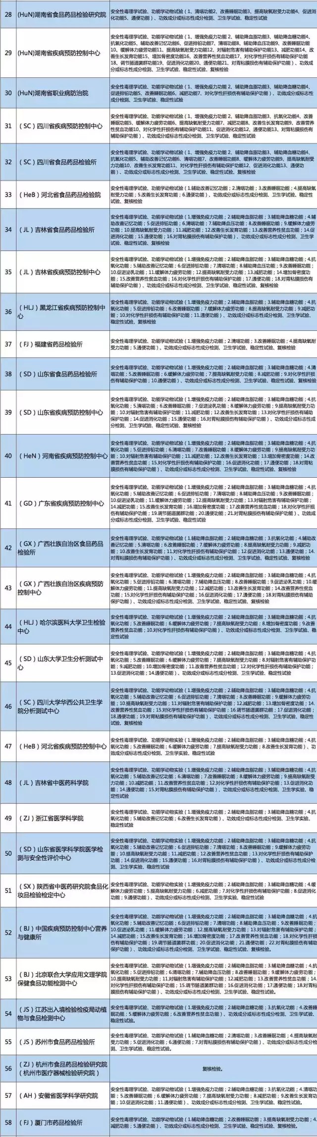 58家保健食品注冊(cè)檢驗(yàn)機(jī)構(gòu)名單