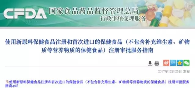 12月25日,國(guó)家食品藥品監(jiān)督管理局行政事項(xiàng)受理服務(wù)網(wǎng)站發(fā)布了《特殊食品類產(chǎn)品注冊(cè)審批服務(wù)指南》,其中包含了使用新原料保健食品注冊(cè)和首次進(jìn)口的保健食品(不包含補(bǔ)充維生素、礦物質(zhì)等營(yíng)養(yǎng)物質(zhì)的保健食品)注冊(cè)審批服務(wù)指南、特殊醫(yī)學(xué)用途配方食品注冊(cè)審批事項(xiàng)服務(wù)指南、嬰幼兒配方乳粉產(chǎn)品配方注冊(cè)審批服務(wù)指南,具體整理《保健食品新注冊(cè)指南》如下: