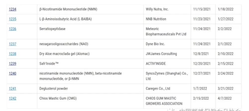 目前也有很多中國企業(yè)正在向美國FDA申請新膳食成分(New Dietary Ingredient, NDI),這可以從FDA的網(wǎng)站中看到,如下圖所示[6]。