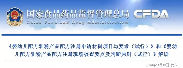 根據(jù)《中華人民共和國食品安全法》、《嬰幼兒配方乳粉產(chǎn)品配方注冊管理辦法》等法律法規(guī),食品藥品監(jiān)管總局組織起草了《申請材料項目與要求》和《現(xiàn)場核查要點及判斷原則》,于2016年8月9日至9月10日公開征求社會意見,經(jīng)反復(fù)討論修改完善后,于10月29日發(fā)布。