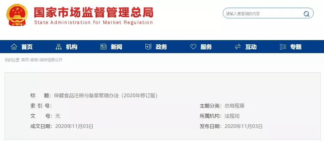 第六十五條 除涉及國家秘密、商業(yè)秘密外,市場監(jiān)督管理部門應(yīng)當(dāng)自完成注冊或者備案工作之日起20個(gè)工作日內(nèi)根據(jù)相關(guān)職責(zé)在網(wǎng)站公布已經(jīng)注冊或者備案的保健食品目錄及相關(guān)信息。