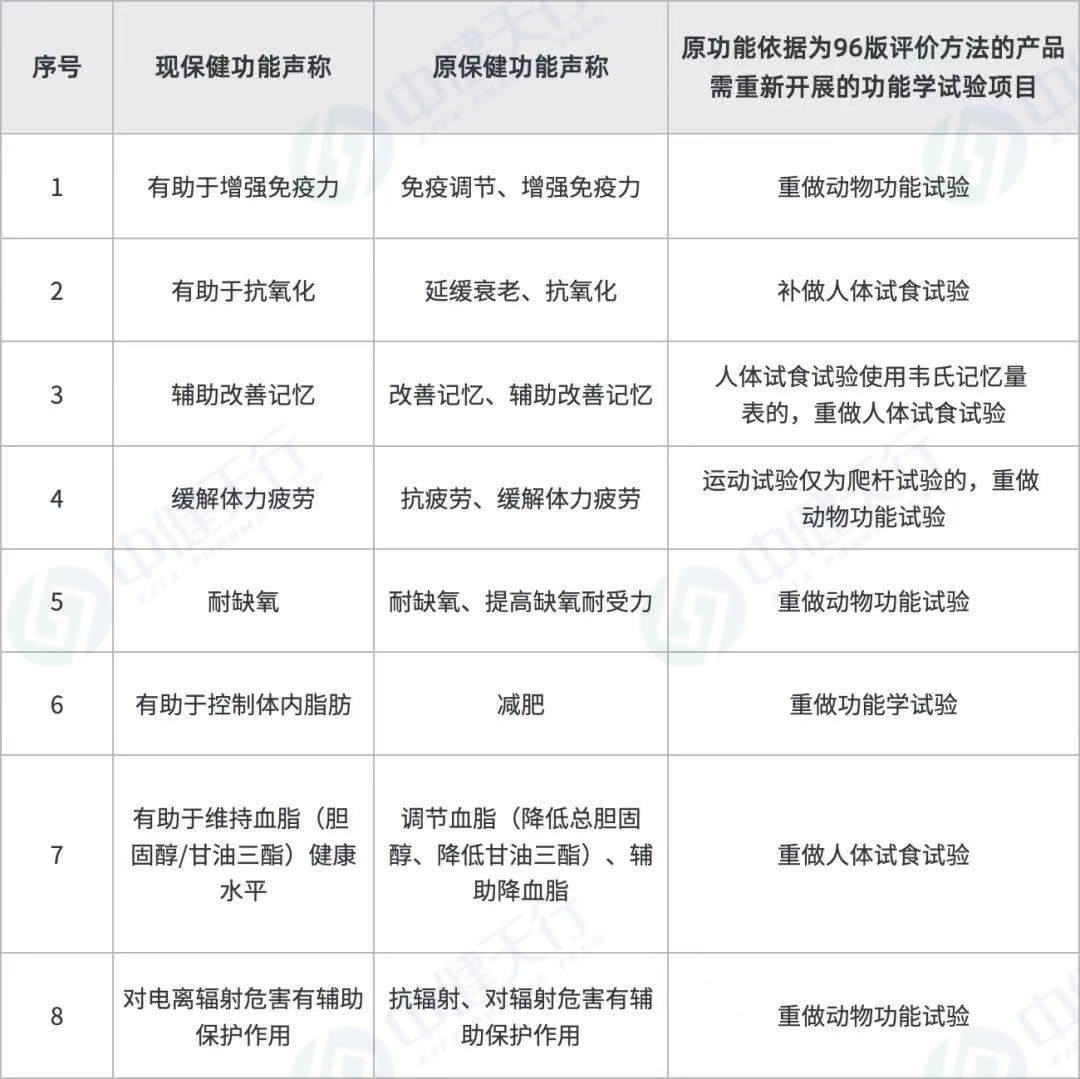 需重做或補(bǔ)做試驗(yàn)的八項(xiàng)保健功能目錄
