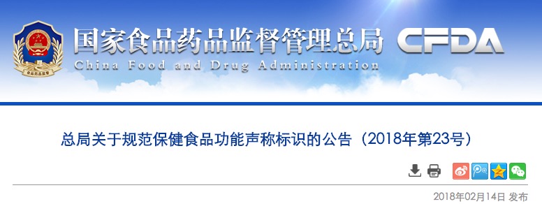 總局關(guān)于規(guī)范保健食品功能聲稱標(biāo)識(shí)的公告(2018年第23號(hào))