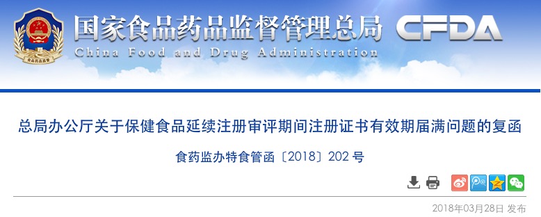 總局辦公廳關于保健食品延續(xù)注冊審評期間注冊證書有效期屆滿問題的復函